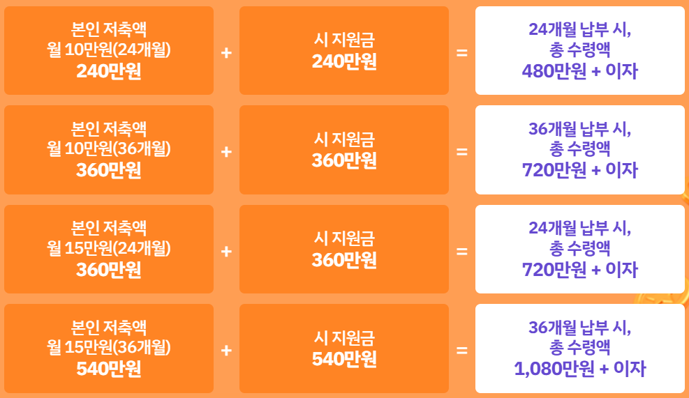 3년 동안 15만원 납부 시 최대 540만원 지원 받을 수 있는 지원사업은
