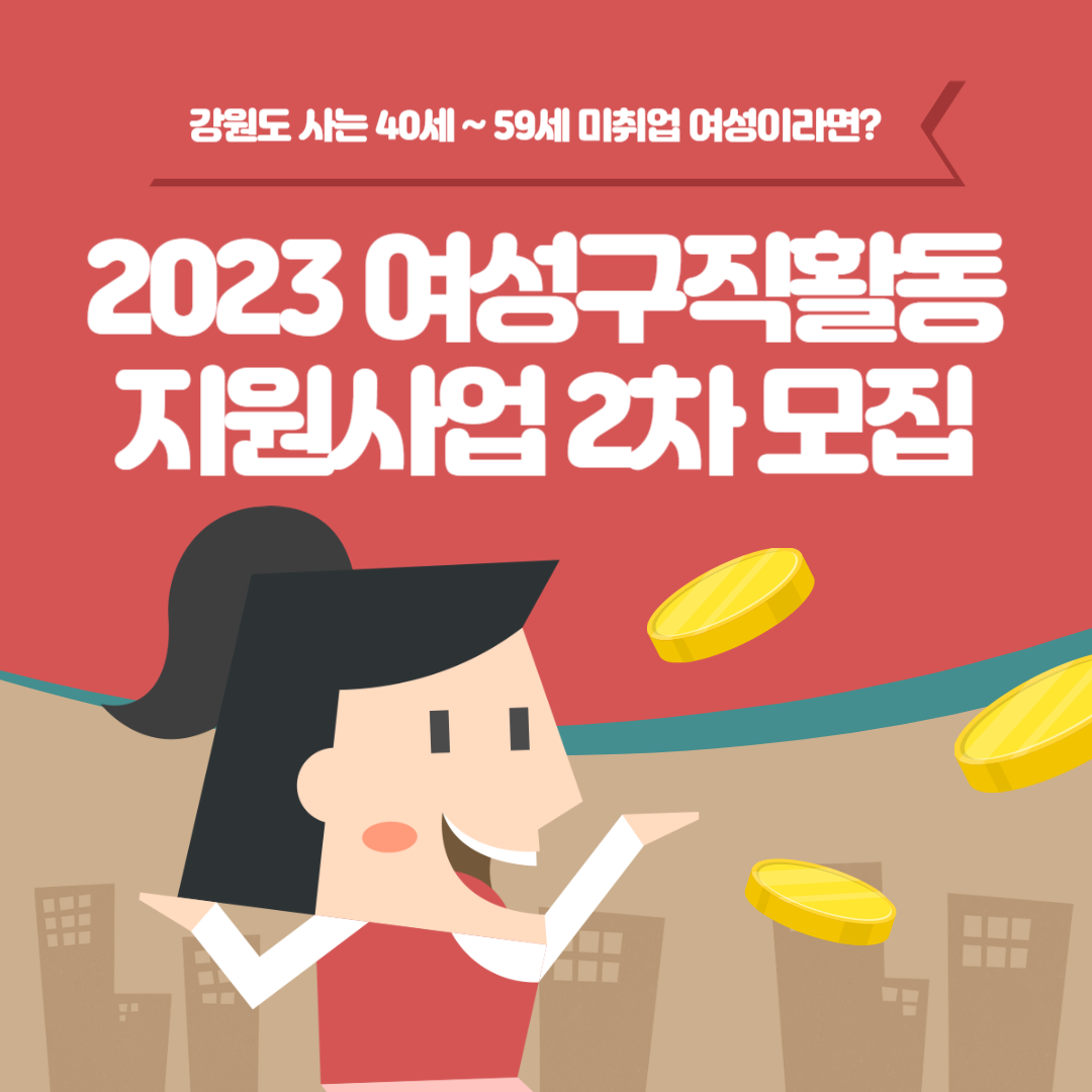 적극적인 구직의사가 있는 미취업 여성에게 안정적인 구직활동 지원을 통해 재취업등 경제참여를 활성화하고자 " 2023 여성구직활동 지원사업 " 2차 대상자를 모집합니다. 월 50만 원씩 3개월간 최대 150만 원을 받을 수 있는 이번 지원사업은 모집인원과 기간이 한정되어 있으니 아래 내용 확인하셔서 꼭 신청하시고 지원받으시길 바랍니다.